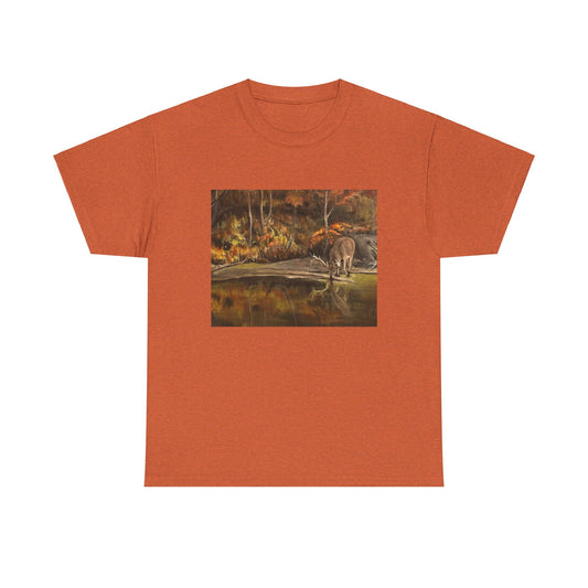 Unisex Heavy Cotton Tee, Deer Haven, Natural Landscape, Sportsman