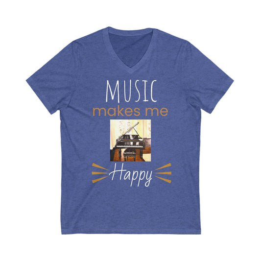 Unisex Jersey Short Sleeve V-Neck Tee, Piano Art, Music, Happy
