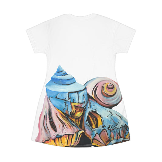 T-Shirt Dress (AOP), Artsy Pastel Beach Shells