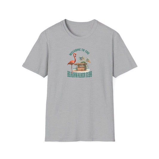 Flamingo Beachwalker Unisex Softstyle T-Shirt, Salt Life & Sunsets Design, Gift Idea, Souvenir, Stylish Tee, Beachwalker Club Collection
