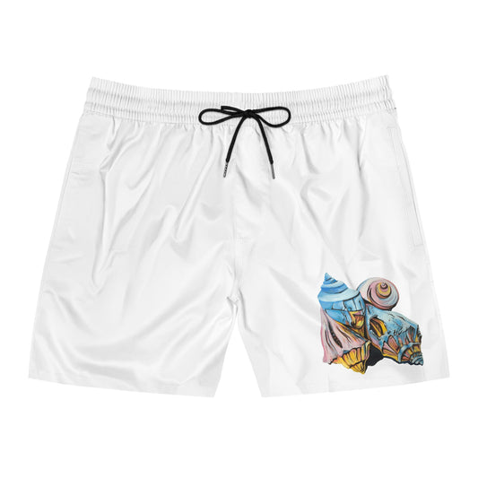 Men's Mid-Length Swim Shorts (AOP), Artsy Pastel Beach Shells, Beachwalker Club Collection
