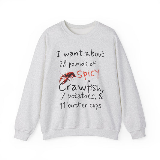 Unisex Heavy Blend™ Crewneck Sweatshirt, I want 28 pounds of Crawfish, Life on the Bayou Collection