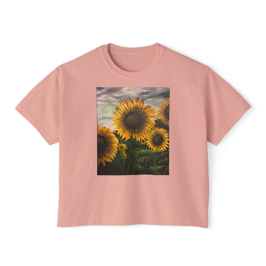 Women's Boxy Tee, Sunflowers, Fields, Nature, Pollinator, Artsy, FrediFred Home Collection