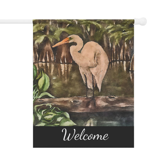 Garden & House Banner, Watercolor, Egret Perch, FrediFreds Home Collection