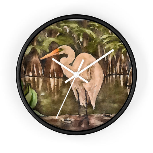 Wall Clock, Watercolor, Egret Perch, Life on the Bayou Collection