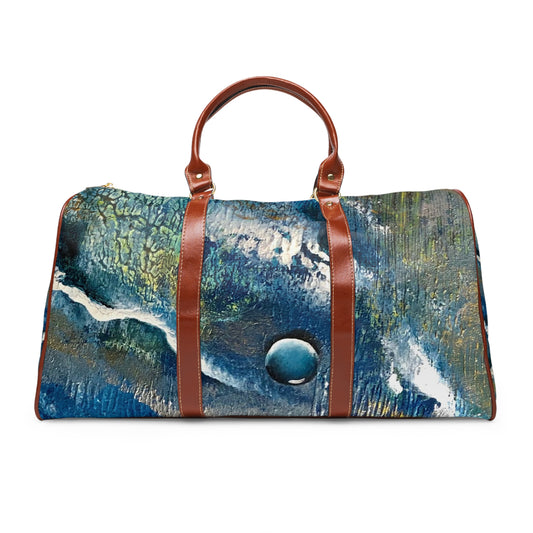 Whimsical Artsy Waterproof Travel Bag, Abstract Ocean Spray Design, Beachwalker Club Collection