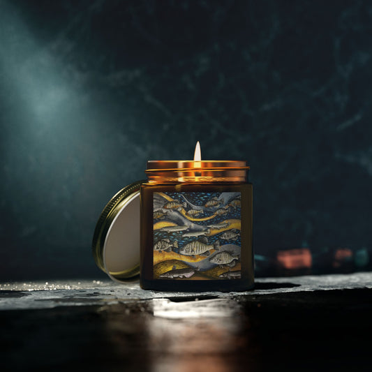 Scented Candles, Coconut Apricot Wax (4oz, 9oz), Manly Man's Candle, Fishing Themed, Honey Hole, FrediFreds Home Collection
