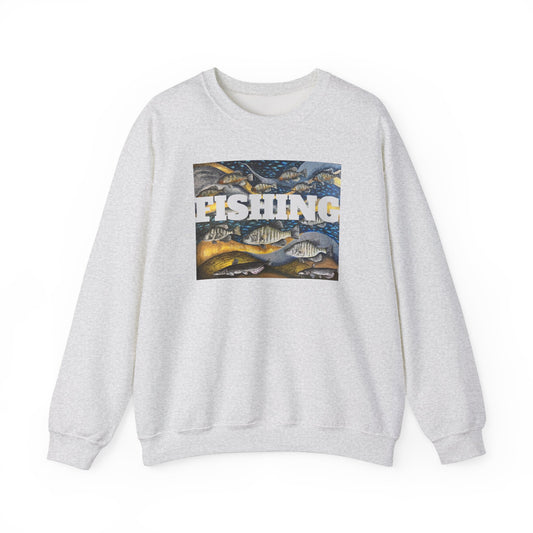 Unisex Heavy Blend™ Crewneck Sweatshirt, Get Lucky Fishing, Original Artwork, FrediFreds Home Collection