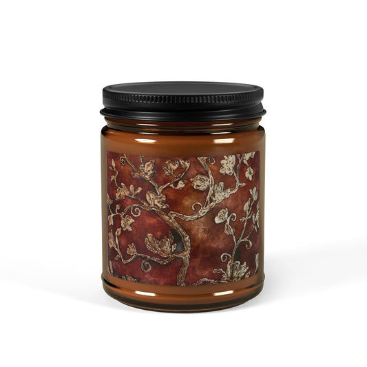 Scented Soy Candle (Multi-Size, Amber Jar), Tree of Life, Original Artwork, FrediFreds Home Collection