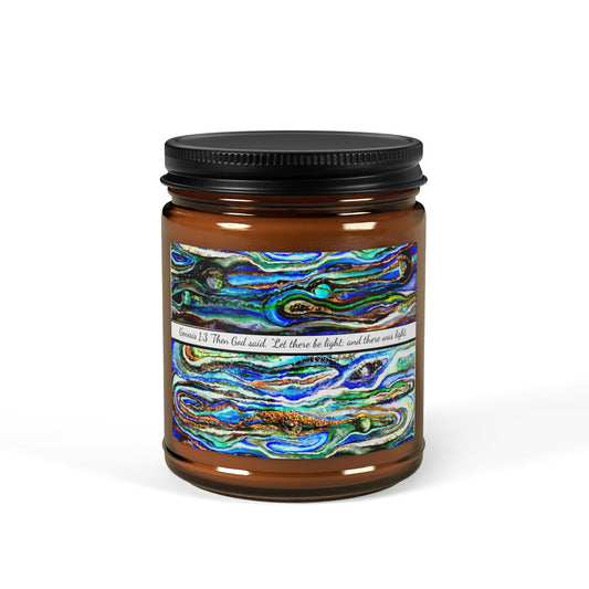 Scented Soy Candle (Multi-Size, Amber Jar), Abstract Biblical Art, Genesis 1:3, FrediFred Home Collection