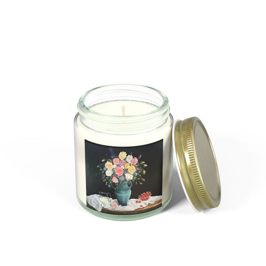Scented Soy Candle, 9oz, Romance, Art, Flowers, Strawberries, Cream, FrediFreds Home Collection