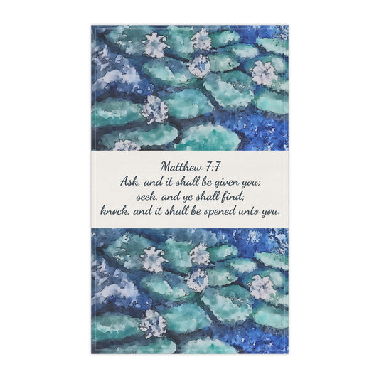 Tea Towels (cotton, poly), Water Lilies, Matthew 7:7, Daily Devotion, FrediFreds Home Collection